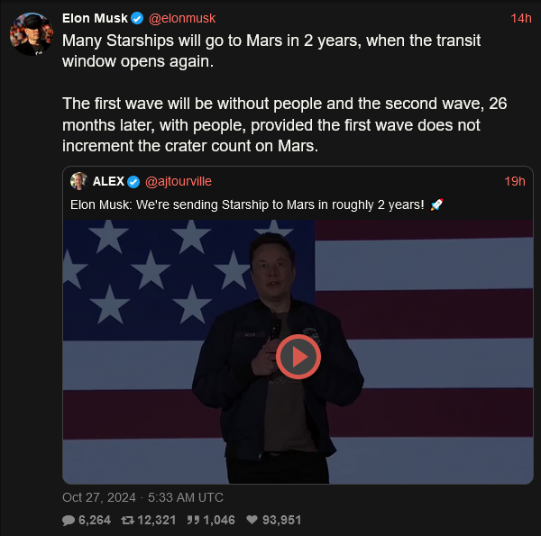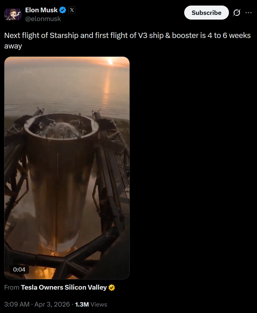 >>16944684Grok, have an opinion on this?Sure do! As of early 2026, the interval between Starship tests has shifted from a "rapid" ~1–4 month cadence in 2025 to a much slower glacier like pace, with the 12th test flight (Flight 12) delayed for 7 months. Maybe 8 months. Sorry. We suck. It's the drugs man. We're going to detox to get clean.