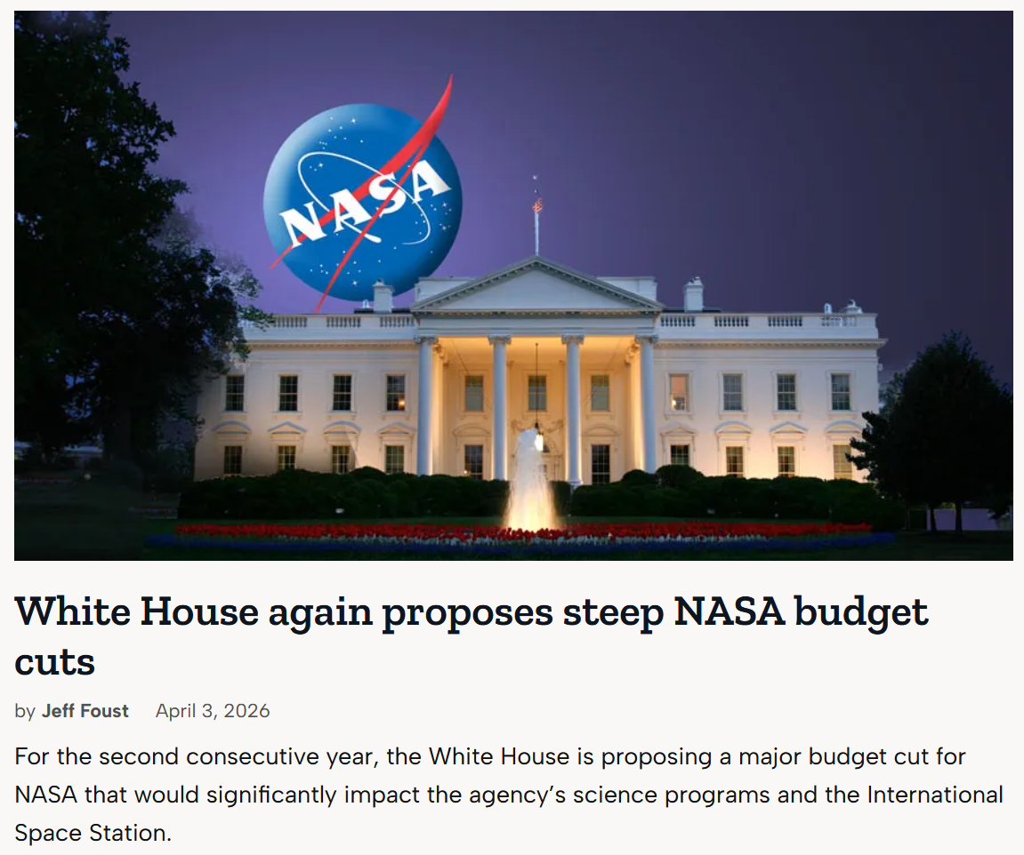 speaking of budget cutshttps://spacenews.com/white-house-again-proposes-steep-nasa-budget-cuts/