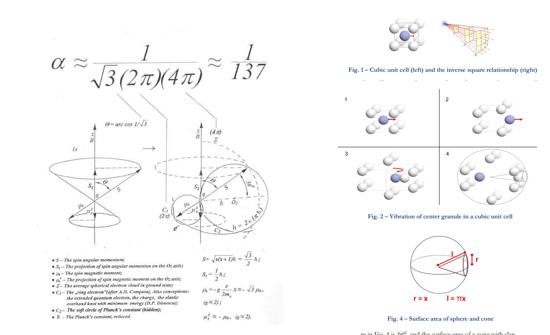 I'm a big fan of these papers. One comes from first principles dimensional analysis to find specific combinations of fundamental constants that cancel out to reveal a purely geometric relationship. I'm a big fan of this approach because, like alpha, pi is also a dimensionless constant (one that relates the 1D diameter with the 2D circumference), so it's useful to ideate it as some sort of geometric condition.The second comes from the geometries of the emission of point sources inside a cubic lattice to geometrically derive the physical basis for Reilly Jr (1971) (A new pastime—calculating alpha to one part in a million) empirical formula.While the first provided geometric interpretation, the second provided geometric precision, and both converge: akin to pi, alpha relates how a 1D vibratory source constructs a 3D vibratory field, a plain geometric definition.Given how alpha is in constant proportion to the impedance of free space—that being essentially a resistance per unit distance traveled in the field, we can see how a quantum of action (as charge) dilutes as it propagates between a 1D point source and 3D spherical wave modes and back.