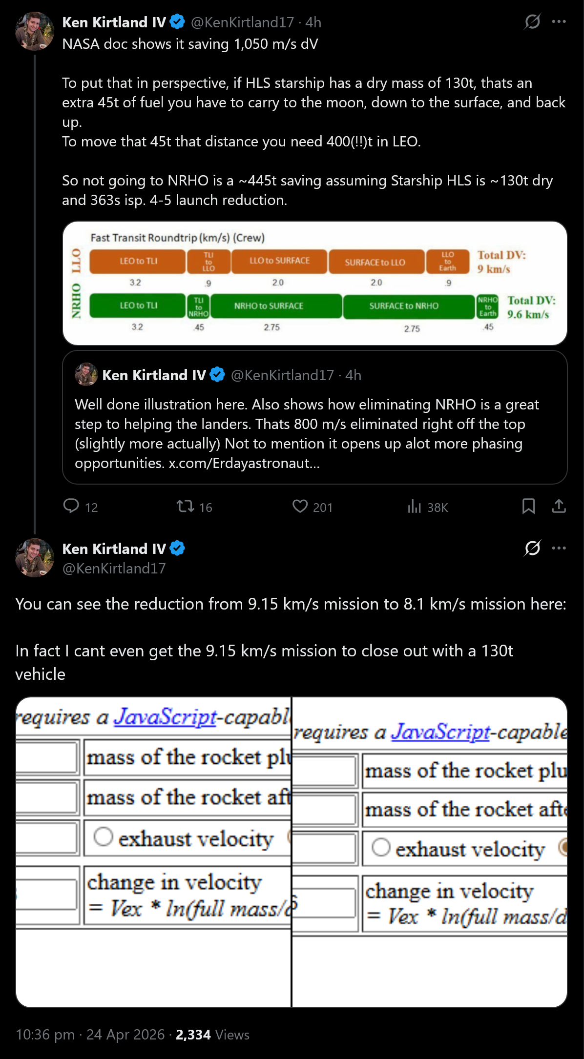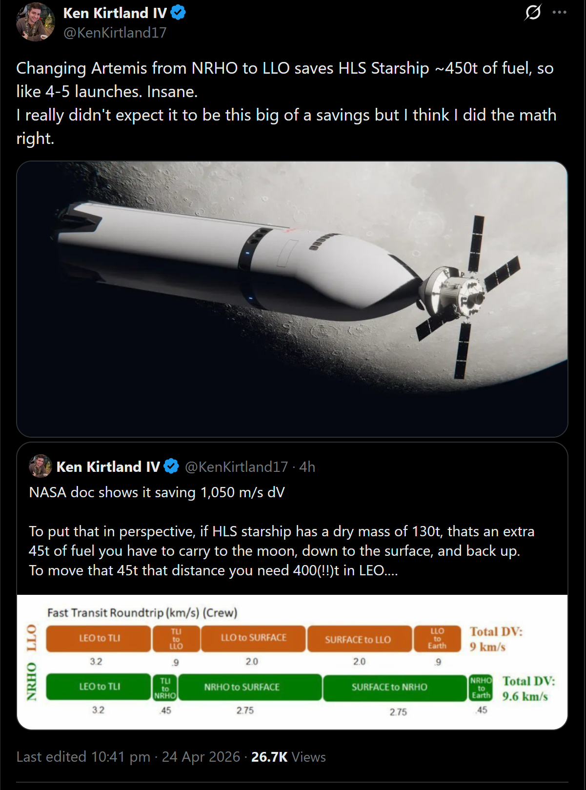 >>16964291That's the optimistic case. Recall Bergers "household name" says up to 40 tanker flights for one lunar landing.