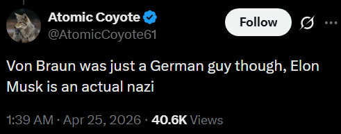 wow... when you lay it out like that, this shit ain't happening, sistershttps://x.com/Erdayastronaut/status/2047693275205701915
