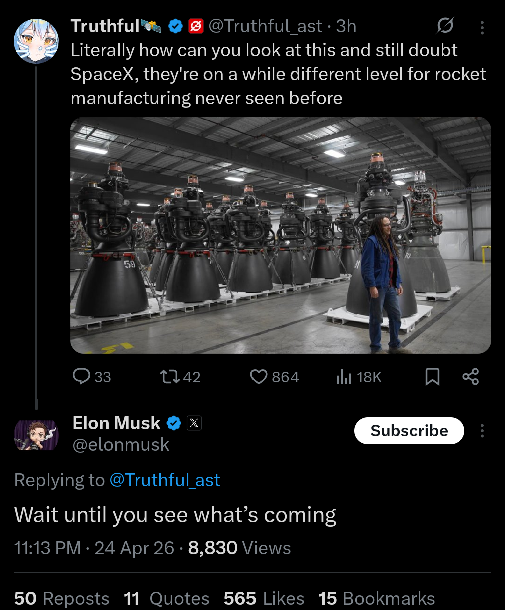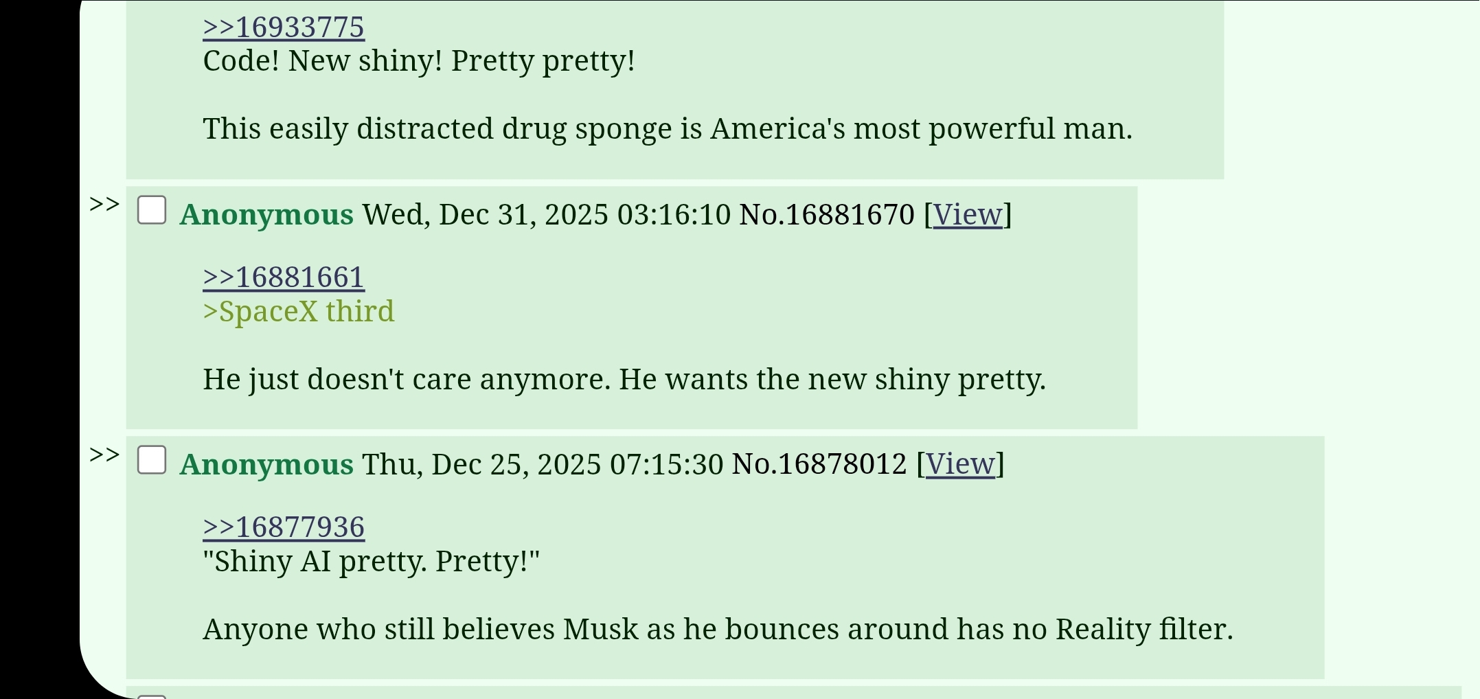 >>16965422I'm glad you think so - Elon Musk