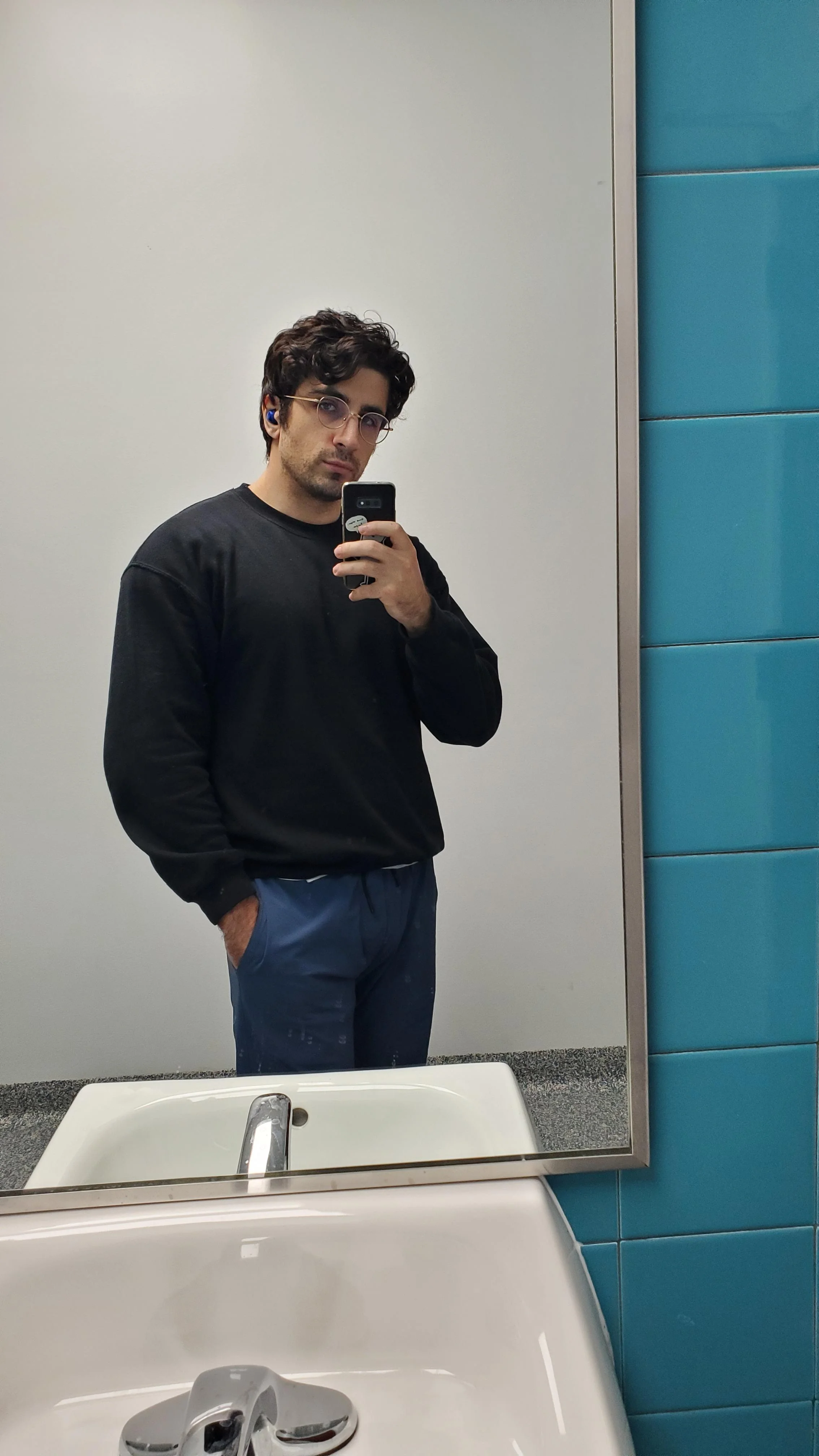 I never take selfies, I know the mirror and bathroom are dirty, and it's half the face, but is it normalish picture and do I look alright and vaguely happy?