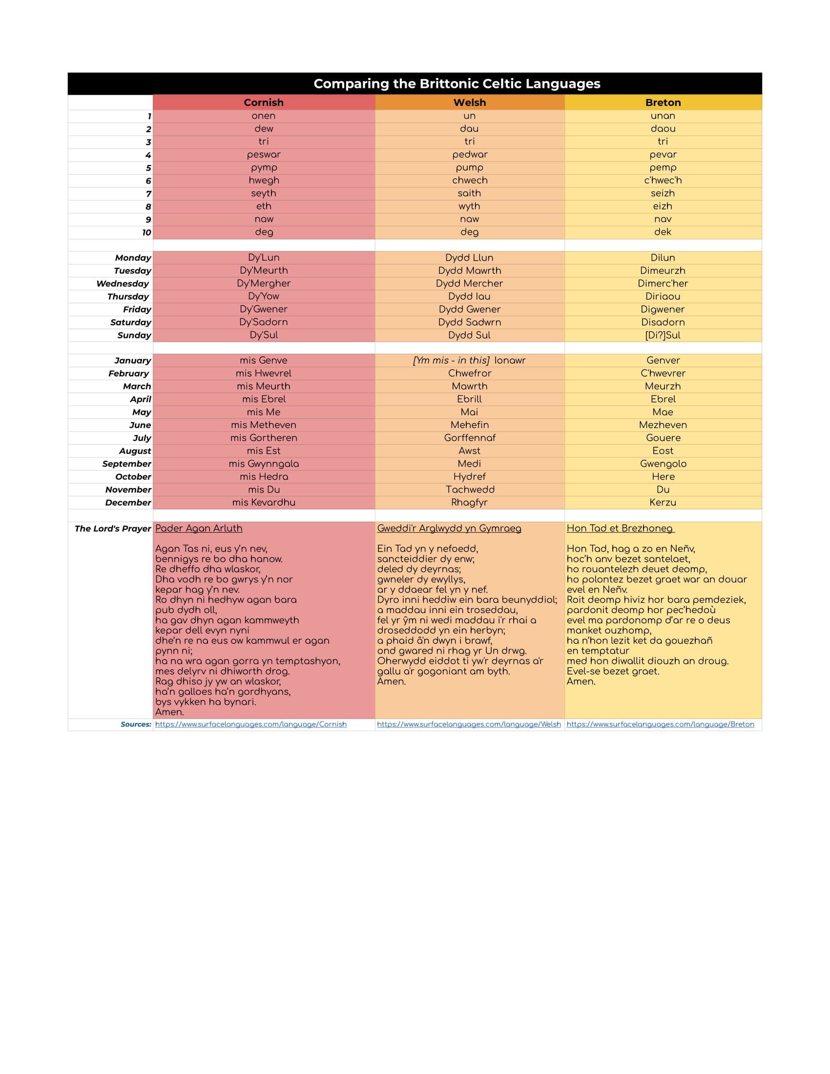 Galician, Scots Leid, Irish, Welsh, Breton, Asturian, Scottish Gaelic, Doric, Shetlandic, Glaswegian, Dundonian, Orcadian, Cumbrian, Northumbrian, Ulster Scots, or Edinburgensian