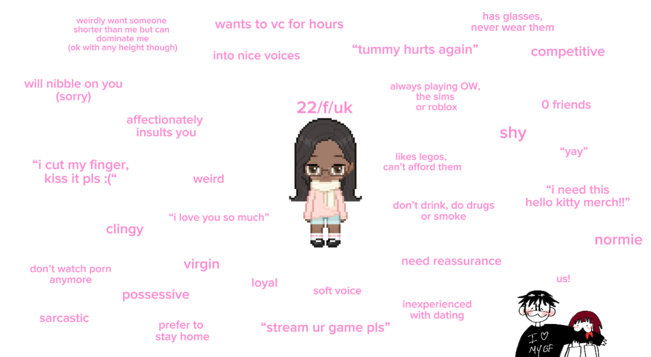 >ASL30/MTF/Northern Ireland>About meI'm like 5'10, with glasses, and brown/blonde/ginger hair depending on who you ask. I don't think I'm attractive but people seem to think I'm cute. I've been told I'm funny and easy to talk to. I can be pretty clingy, when I really get into someone.>Tabletop RPGs, anime, video games (especially MMOs). I play a wide variety of games and would love a partner to hang out and play games together with for way too long. I'm also a bit of a weeb and my music tastes reflect that.>Looking ForPeople interested in the possibility of a serious relationship. I'm a hopeless romantic, and my dream in life is to be someone's housewife, dedicating my life to supporting my spouse's goals and dreams. I want to cook for you, clean for you, satisfy your needs, and be taken care of in return.>KinksPetplay, bondage, cnc, and all that kind of stuff. I want to belong to someone. I am 100% a submissive bottom. None of this is strictly necessary, but a kink-focused serious relationship would be pretty nice.>About youIdeally be at least left leaning.You should be at least a little dominant, kind, and fun to spend time with. Any gender is fine and I tend to easily be physically attracted to people I like the personality of.It's okay if you don't have everything in your life figured out yet, I'll support you and help you make that happen.I don't think I can date anyone younger than 25.Despite the kinks I'm very affectionate and love cuddling, so if you're the same that's perfect.>Discordfearfultraveller