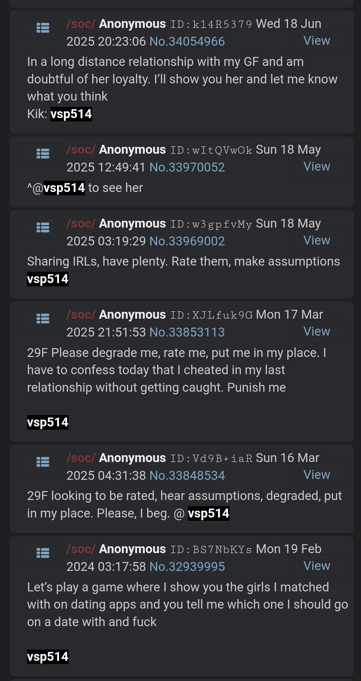 > 28F Indian> Looking for:Some casual fun. Willing to share what I look like in return for a rate, body critique, raceplay commentary. I am submissive in nature.>Not looking forVideo or voice calls>Kikvsp514