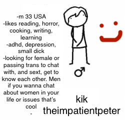 This is me rn :)Kik is theimpatientpeter