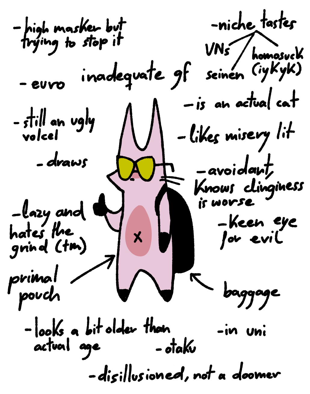>>34424177Definitely some sort of weird loser archetype that postures as being deep/dynamic but is actually just retarded and shallow, and insecure. Goodluck though other anons I give it a 3/10