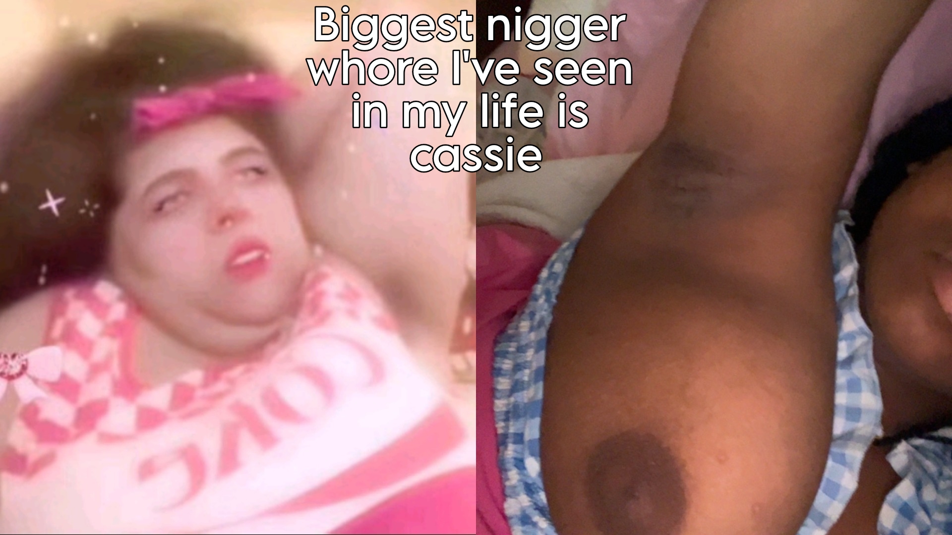 >>34757308FUCK YOU CUNT! YOU’RE JUST A FAT FAGGOT WHO CANT HANDLE A WOMAN. YOUR JUST FAT BECAUSE YOU HAVE HORRIBLE FAT DISTRIBUTION. IM 5’4 AND 210 POUNDS AND STILL LOOK VERY VERY VERY NICE. I HAVE PERFECT FAT DISTRIBUTUTION. I LOOK GOOD AS HELL AND YOU KNOW THAT. UR JUST MAD IM 8 INCHES SHORTER THAN YOU AND WEIGH THE SAME AND STILL LOOK BETTER, CUNT! CASSIE IS A BEAUTIFUL THICK EBONY QUEEN