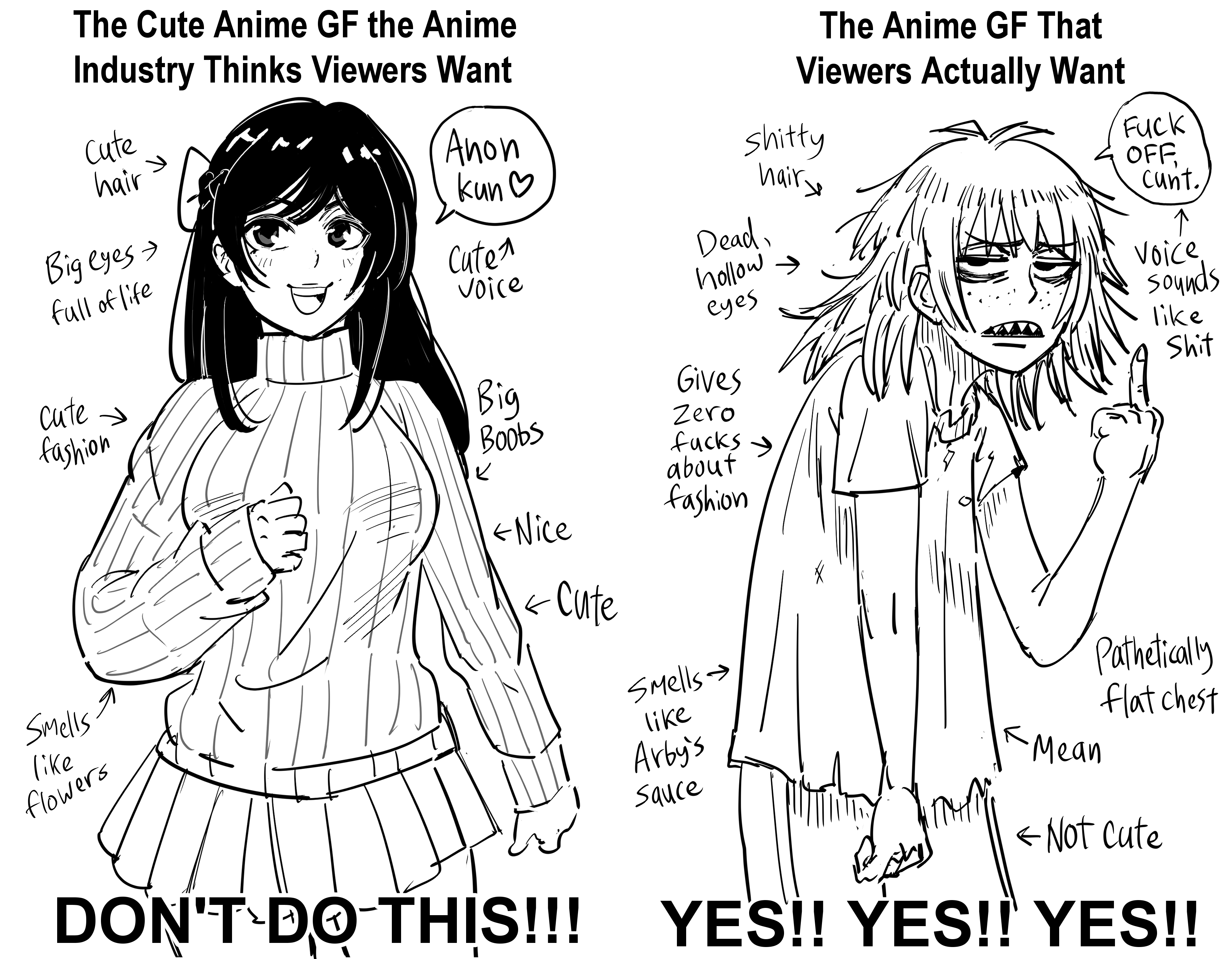 >>34709781failure on account of looking like the girl on right and being oldgei am hijacking your post as a writing prompt and bastardizing it into my own fanfic>she shares what she learned during dinner together with you, despite the info being rarely useful or practical ("so the optimal parameters for keeping seawater tanks is-")>you both end the day by watching an ep of an outdated sitcom or some stupid youtube essay>we drift off to sleep as we soft-theorycraft off what we just watched>when you get home from work she shows you her drawings and asks for suggestions for their social media, treats you like a serious business partner in this context despite it just being about bunny drawings>also shows you whatever amateur game save they have ("I've lasted for 2 weeks on zomboid just in this one room eating chips")>you both also play some silly games together in unconventional ways, just collecting things, limit-testing stuff, challenge runs>you wish she would read books with some significance but she keeps yapping about junky self-help books (why does she keep talking about lobster psychology anyway). you accidentally form a bookclub duo as you suggest "better" books to herfanfic future arc episode:>some years later, have a kid together>she's clueless about motherhood, ends up being the kid's "best friend" instead>this proves a challenge as it forces you into bad-cop role constantly and feels imbalanced>you both eventually figure it out and find balance, and you're all each other's best friends, including the kid>lots of time with kid spent drawing and crafting entire universes and lore around it>kid often makes fun of your drawings for being funny-looking stick figures>the stick figures are still awesome though>big encyclopedic binder of family's fictional universelet's hear everyone else's girlfailure fanfics