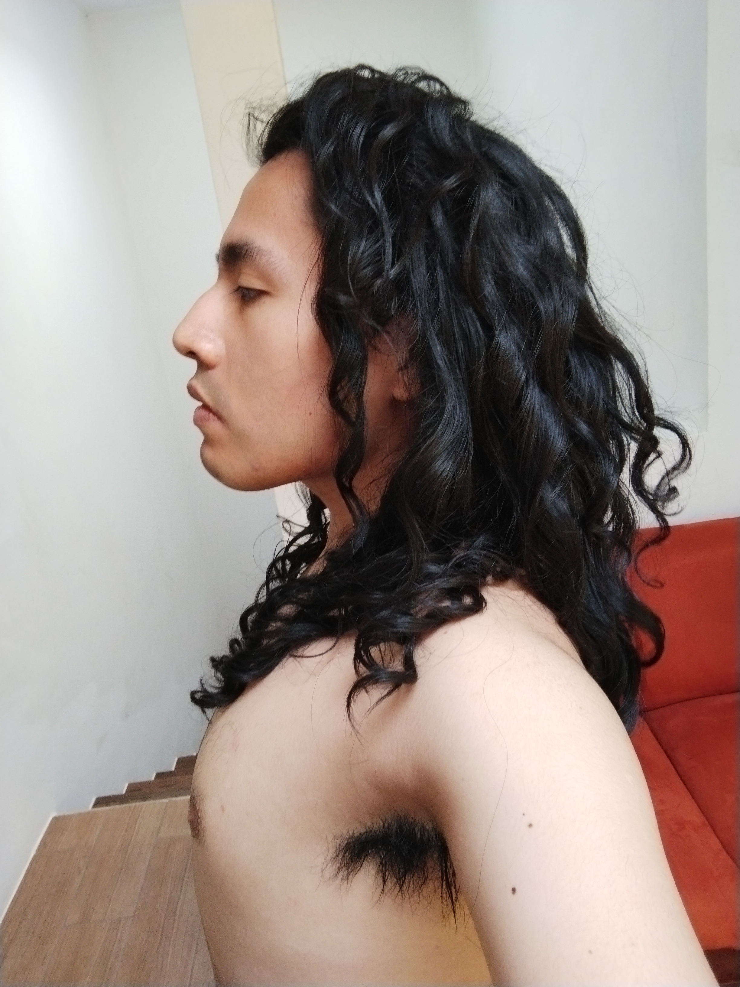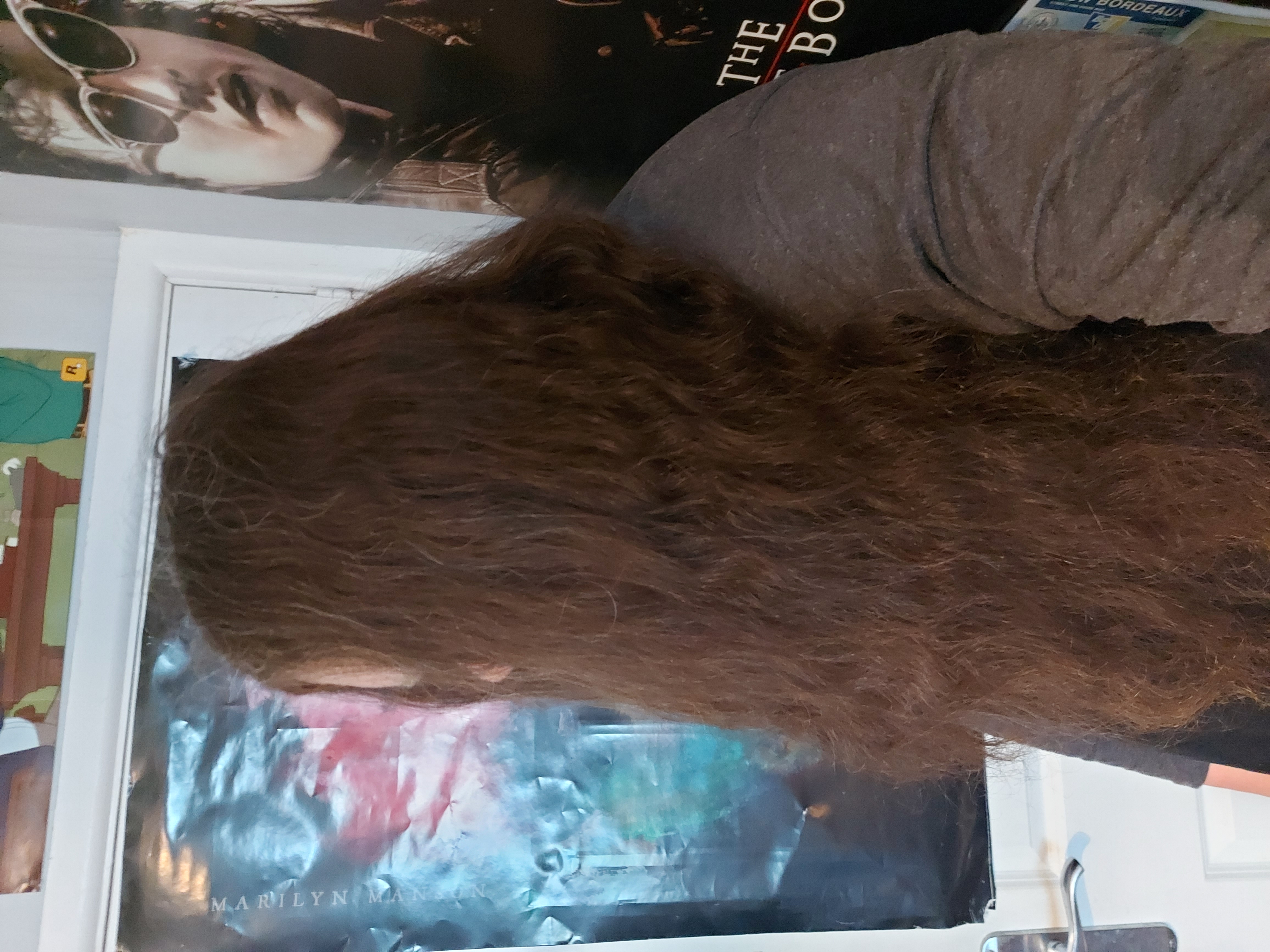 >>34864116Not that long, probably not scaled, decently curly, I doubt you can be bothered with a woman's hair routine.Wet em thoroughly until they lay smooth and brush em at least once a week, keep wetting them, part them, make sure they're perfectly untangled.Then, the most basic way to keep em from looking uneven and messy, wet them with cold water to condition them, squeeze them dry with microfiber towels or cotton shirts then headbang like a metalhead and shake your head like a dog.