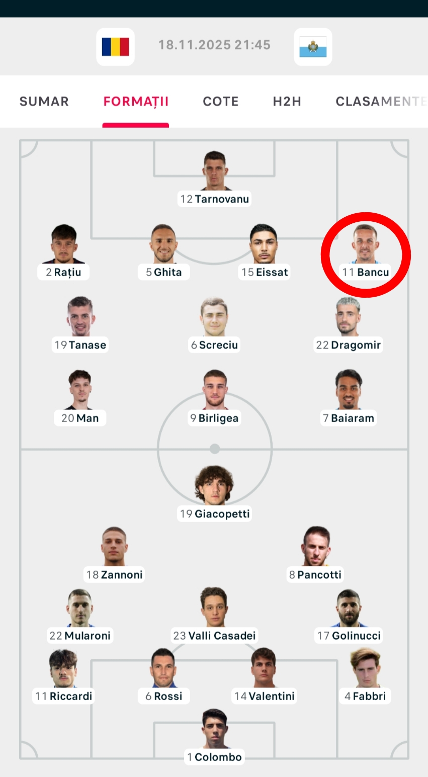 Since i see you guys also like overs for our game tonight i just want to highlight the first win condition of our bet tonight: the left back. This player likes to go forward a lot, for years it's been said he's not great defensively, but spectacular in attack. A similar player would be Di Marco. Then i see he's been paired with one of his teammates from Craiova on the left wing, Baiaram. The #9 Birligea is also capable of scoring goals, and Tanase, both from FCSB, very technical and capable of creating chances or scoring. Then on the right we have Ratiu who plays at Rayo Vallecano, supposedly a speedster, and Dennis Man, considered our most valuable player, from PSV, who scored a beauty against Napoli but often a choker, could and should also score today. And from the bench i also see multiple options for scoring, like Louis Munteanu as striker who scored 20+ goals for CFR last season, or Olaru from FCSB who scores every other game. Ianis Hagi could also score against mighty San Marino, or whoever comes in, even Miculescu or Dobre. Lots of names that mean nothing to you fine people, but my point is in this game with no stake, 0 pressure, at home, but with a desire to perform in front of the fans .... i see us scoring 7 goals. When FCSB played Virtus Pro from San Marino, it looked like they played against amateurs and scored at will. Should be similar