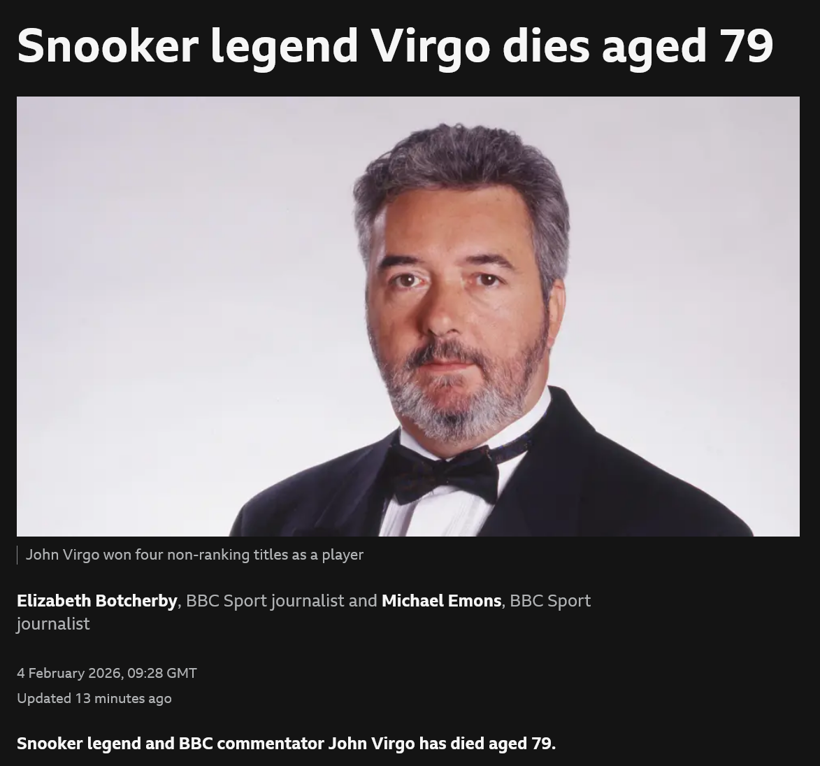 Lads I was really worried I heard on the radio in the van "snooker virgin died" and I thought all of you were dead but turned out I misheard it slightly.