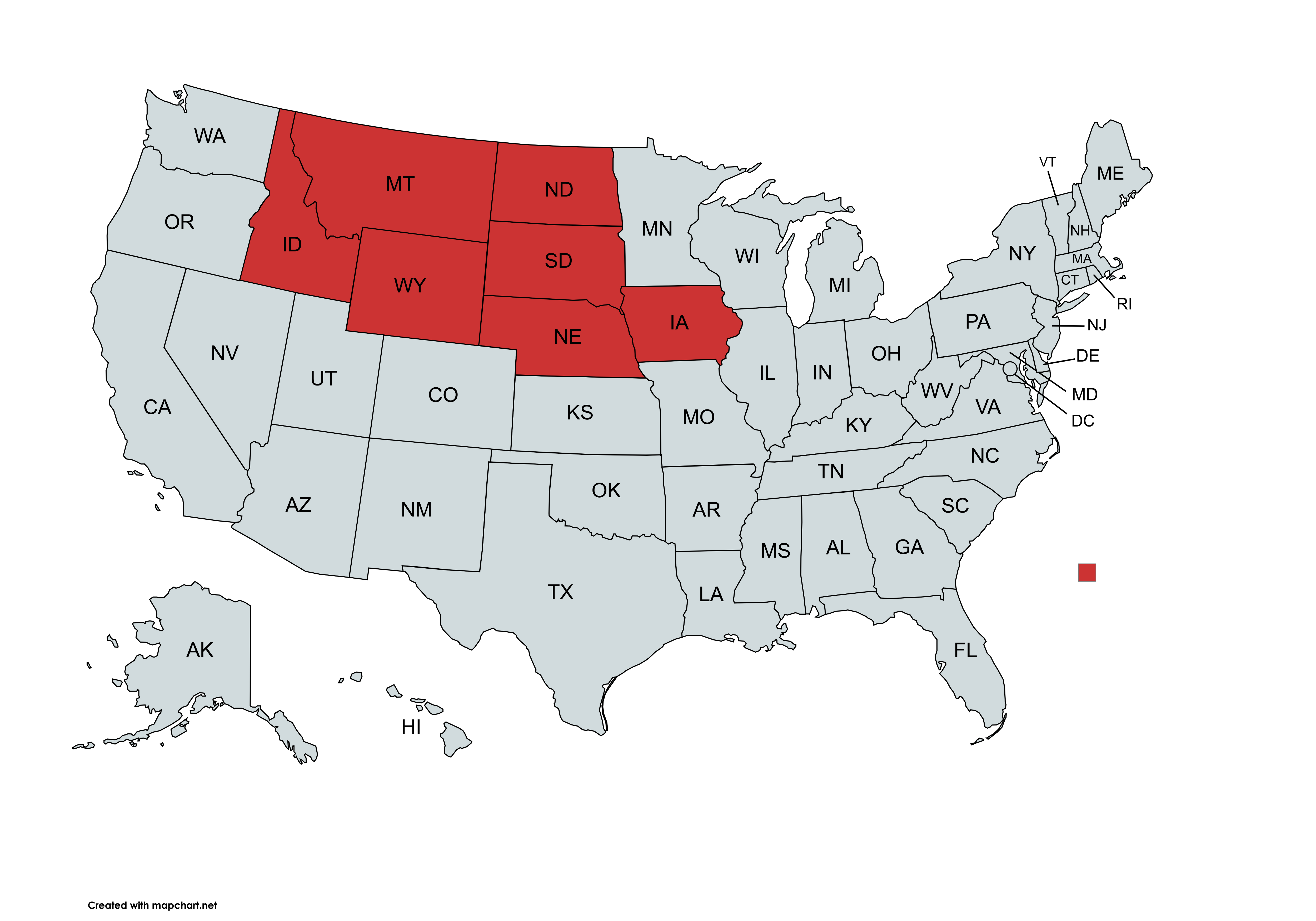 >Montana>Idaho>Wyoming>North Dakota>South Dakota>Nebraska>IowaThey aren't any NFL, NBA, NHL or MLB teams in those states. Why?