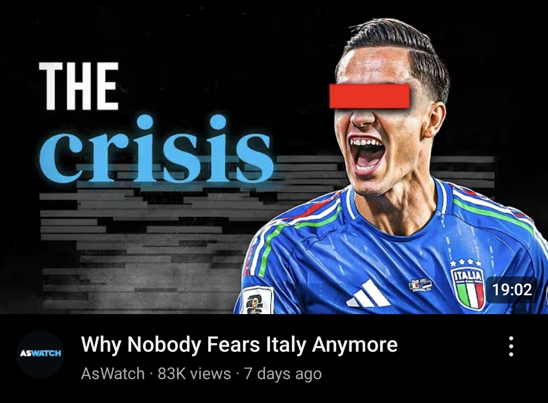 Italy simply doesn't deserve to be on the WC anymore, these niggas are out here getting boddied by Northern Macedonia and Bosnia and Herzegovina. 2006 was a win but also a goodbye.