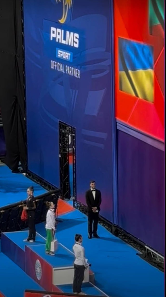 >Ukrainian rhythmic gymnast Taisia Onofriichuk dominated the World Cup in Sofia, Bulgaria, winning four gold medals across five disciplines. However, the actions of a Russian silver medalist in Sofia have sparked significant outrage.>During the medal ceremony for the Hoop competition, Russian “neutral athlete” Sofiia Ilteriakova did not turn to face the Ukrainian flag as the anthem played for Onofriichuk, the event winner.>While Onofriichuk and bronze medalist Sofia Raffaeli (Italy) stood at attention, Ilteriakova was seen facing away from the flag as the Ukrainian anthem played.https://x.com/pointyour_toes/status/2038587749968527514What should be her punishment?