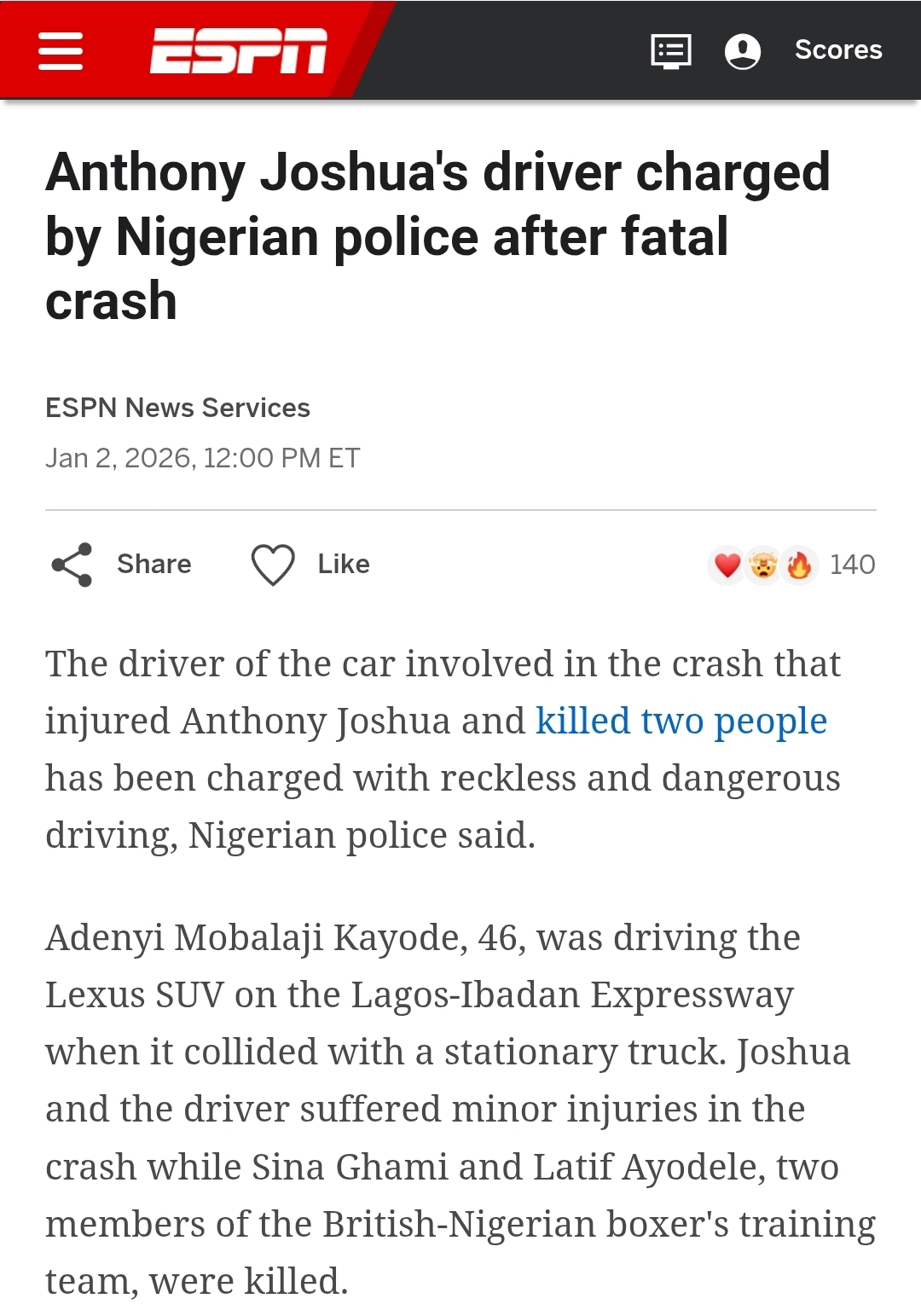 https://www.espn.com/boxing/story/_/id/47482769/anthony-joshua-driver-charged-nigerian-police-fatal-crashI am genuinely surprised.