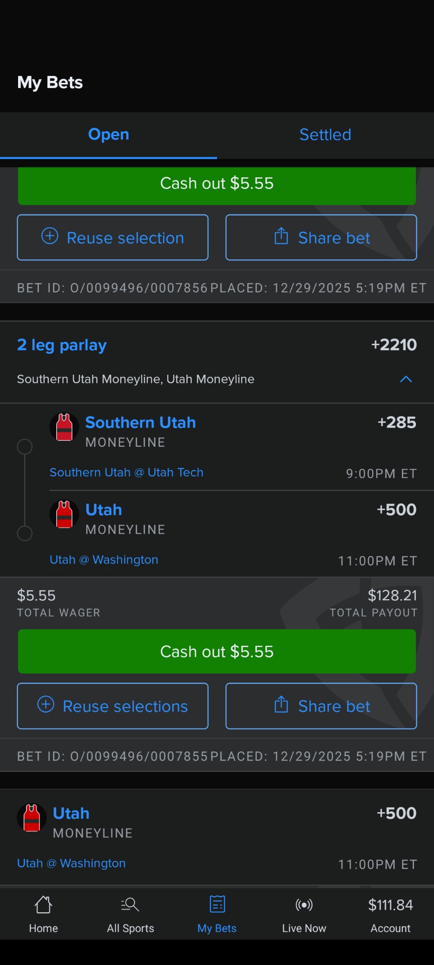 I have another 2 team parlay or straights for CBB, both ML potential.Southern Utah and Utah are ML worthy.
