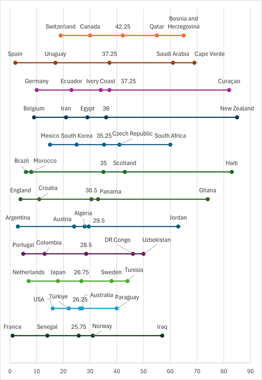 Average ranking of each WC group