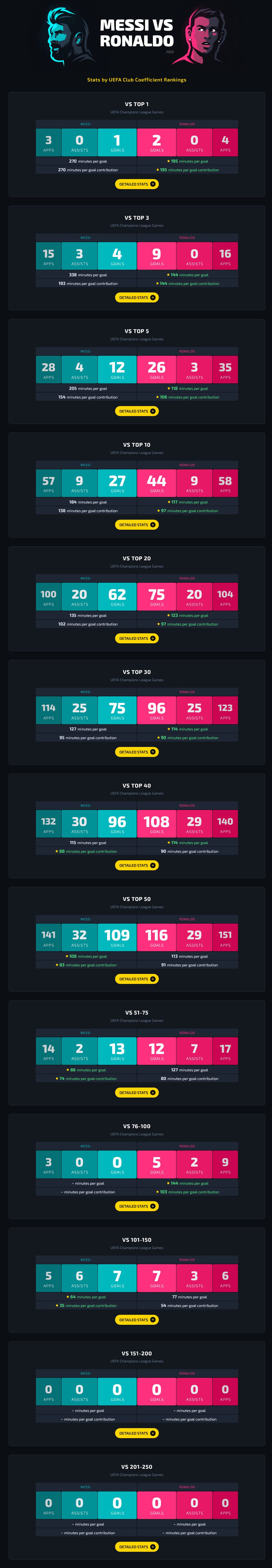 Ronaldo had the highest peak in football history, but his style of play was completely unsustainable, which is why it didn’t last long. It’s simply impossible to put up the kind of numbers he did before the age of 20 without putting enormous strain on your joints. Completely unviable in the long term, but extremely effective in the short term. If, by some miracle, he had managed to maintain this performance until the age of 25, he would unquestionably be considered the GOAT today.