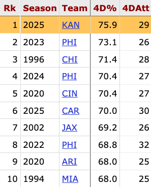 The 2025 Chiefs are the greatest team on 4th down in NFL history