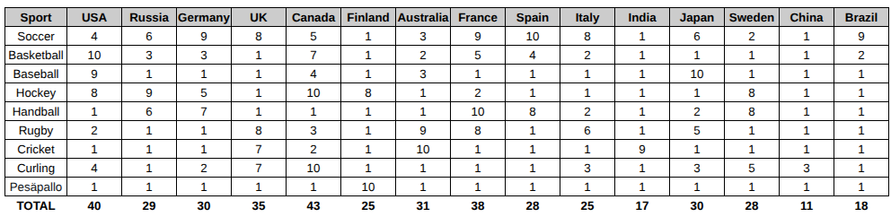 >>152846468Handball is incorrect. Canada is markedly worse than the US who should be 2. Italy, Japan and Brazil should also be 3-4.