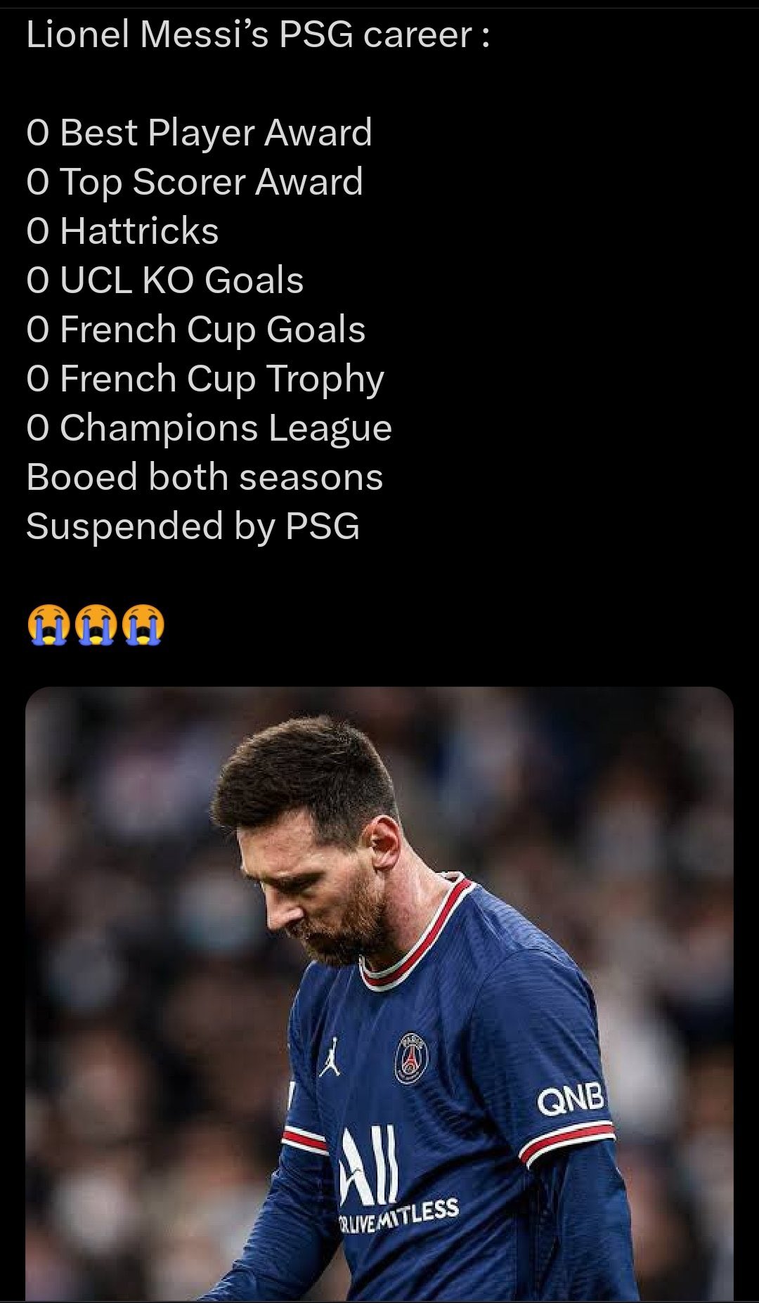 >>154338816Didn't have iniesta and xavi to carry him. He was dead weight and PSG won after he left
