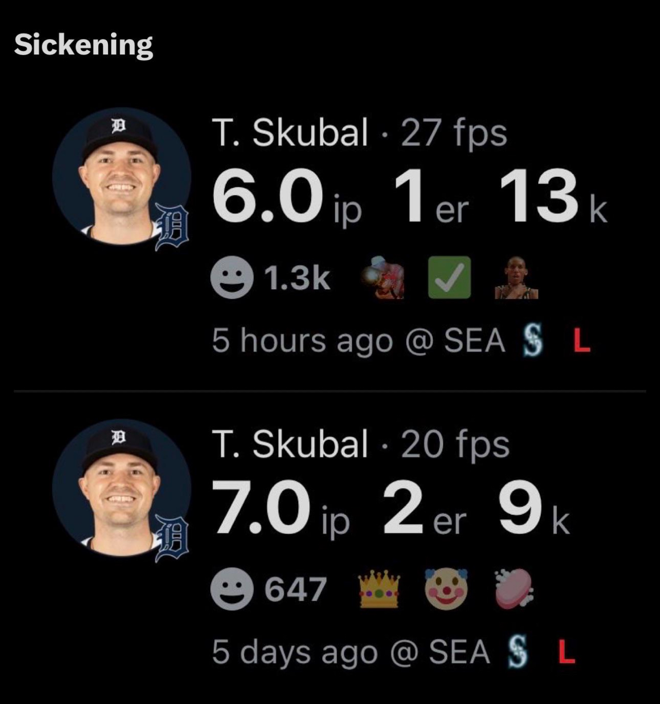 >>151305216It wasn't just Skubal who shut the Mariners down. Situational hitting seems to be a real problem for the Ms