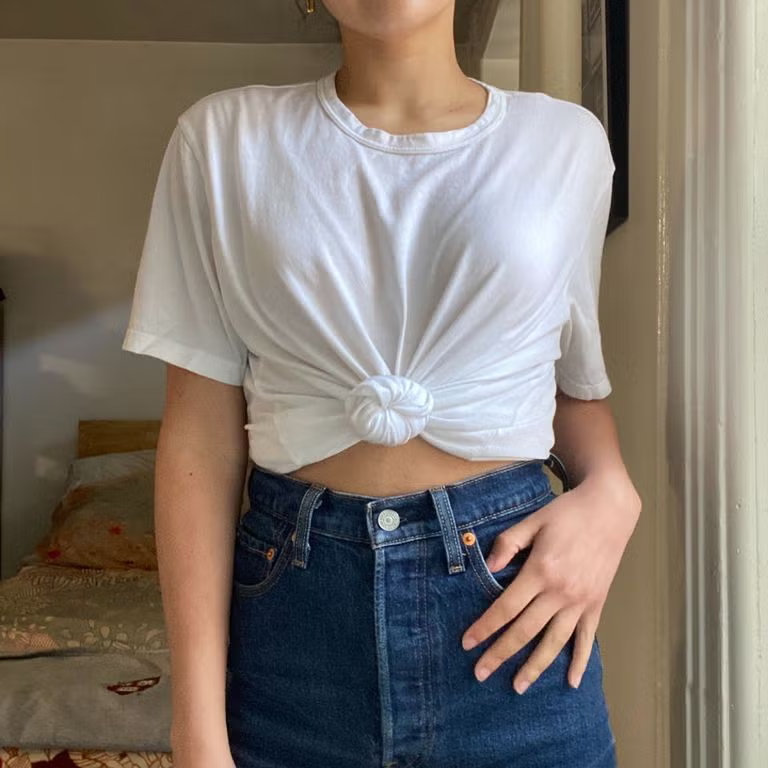 my tshirt is too big so I have to tie it up like this when I go take a shit