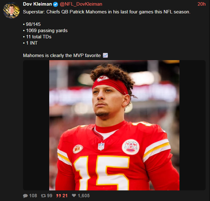 >>151364788How has Mahomes had a resurgence?