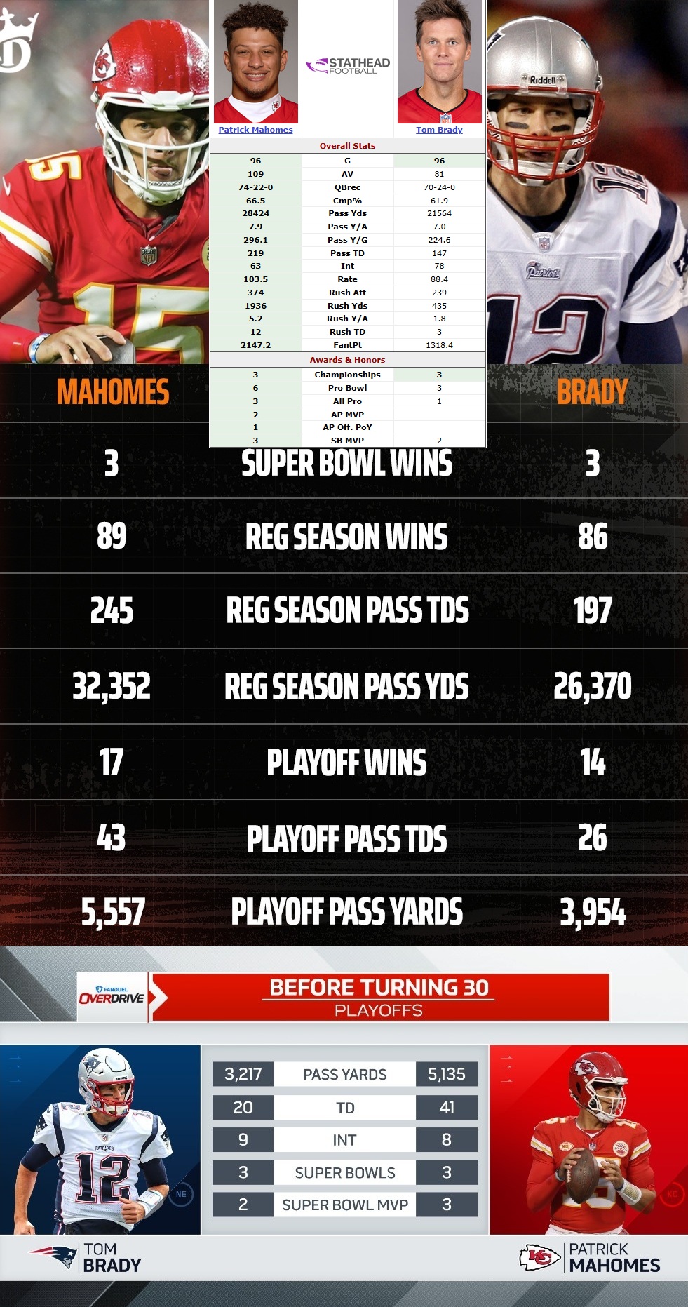>>151400466>>151400495>>151400547-Highest win rate of all time-Most TDs per game of all time-Most yards per game of all time-2nd most playoff wins of all time-Only QB to have 3 Super Bowl MVPs at this age-Only QB to never miss a championship round-Best TD:INT ratio and passer rating in playoffs (min 10 games)>>151400521Mahomes went to 5 Superbowls in his 20s, meanwhile Brady struggled to make it to 3. Brady had 0 MVPs or 1st team all pros in his 20s. Mahomes had 2 MVPs.