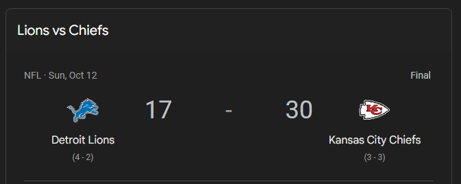 >>151402664Chiefs eased up on them in the 4th to run out the clock but if Mahomes needed a TD he would have gotten one. Lions D wasn't stopping anyone.