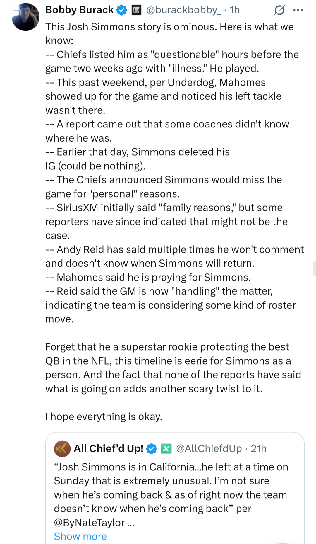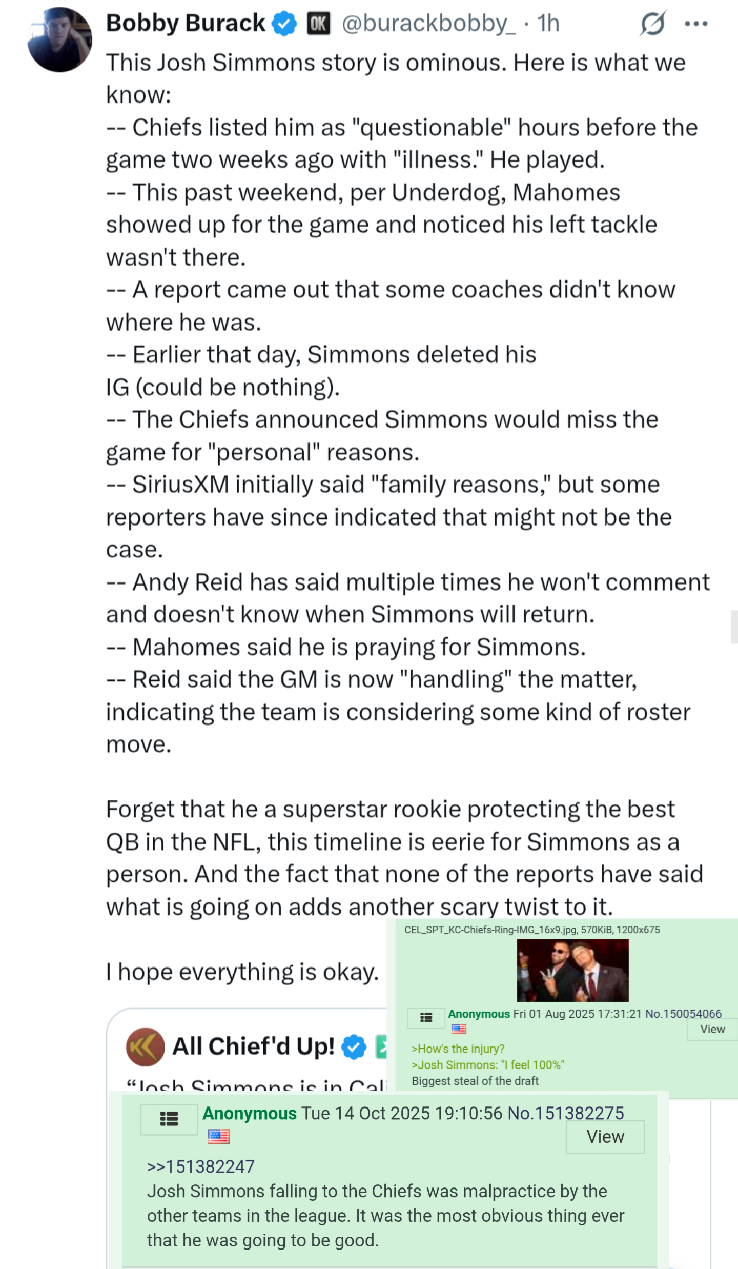 Chiefs rookie LT, Josh Simmons, has quit on the team. Discuss.