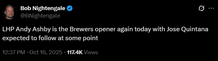 your mission: predict brewers starting pitcher tomorrow