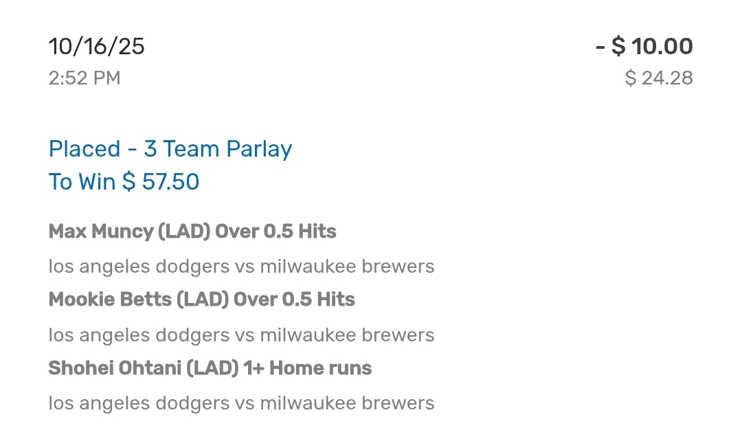 Dodgers aren't going to lose another game. Sweeping the Brewers and will sweep whoever comes out of the AL.