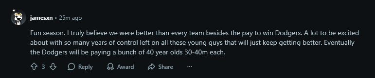 >>151416904nobody is beating the dodgers .im almost certain they will 3-peat