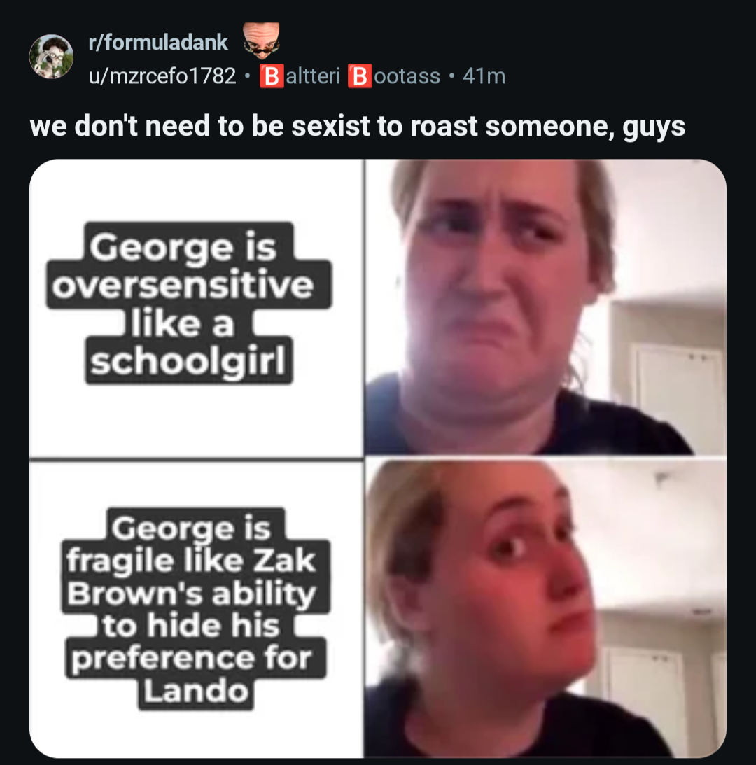 >Fernando: "The McLarens have enough advantage on the car to fight between them, but I think with Max that can happen- as we saw in 2021, when the car was a little bit less performing than the Mercedes, he still win the championship in Abu Dhabi."Hamilsisters... our response?