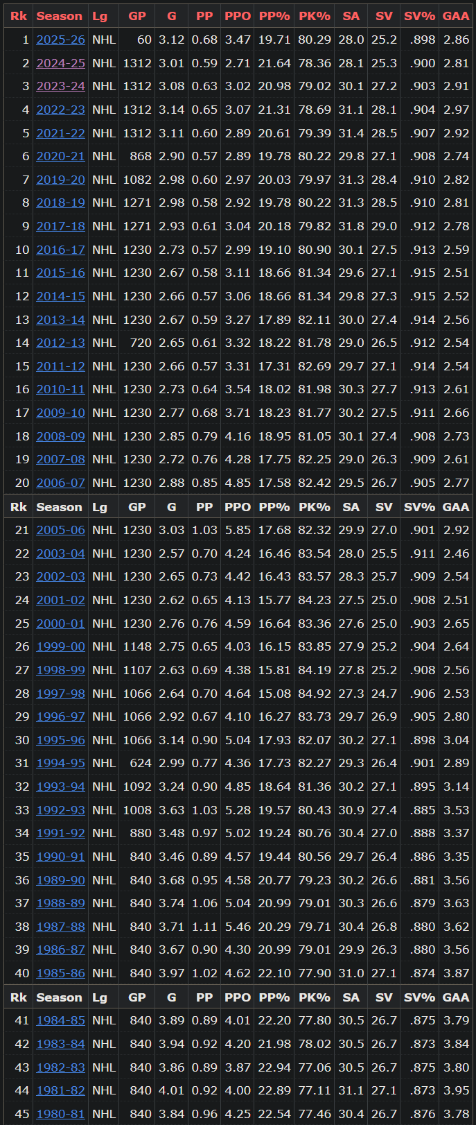 goaltending is so shit now we are back to the 80s level of offensive production