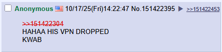 >>151422304HAHAA HIS VPN DROPPEDKWAB