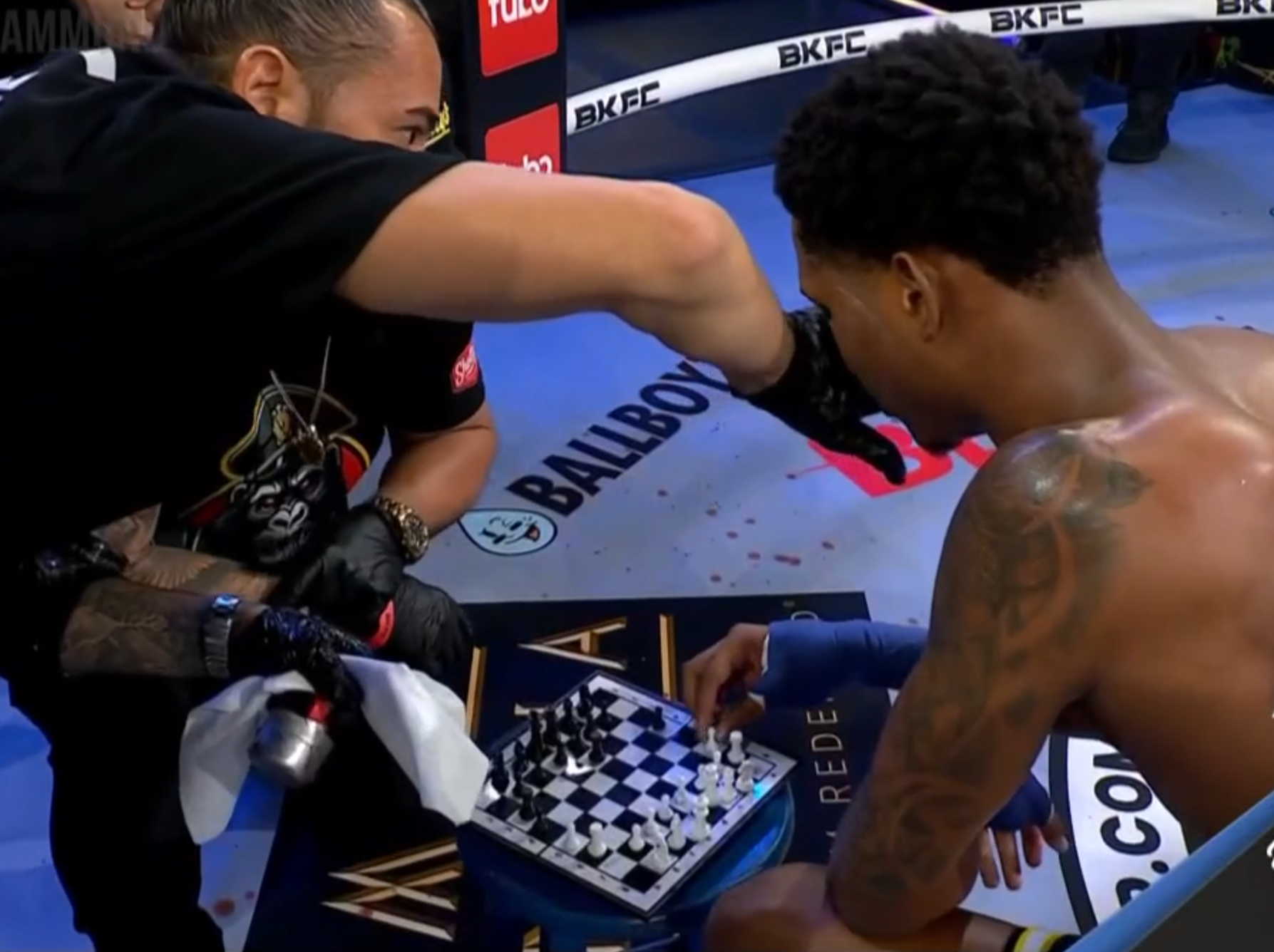 kek fighter is playing chess between rounds on knuck