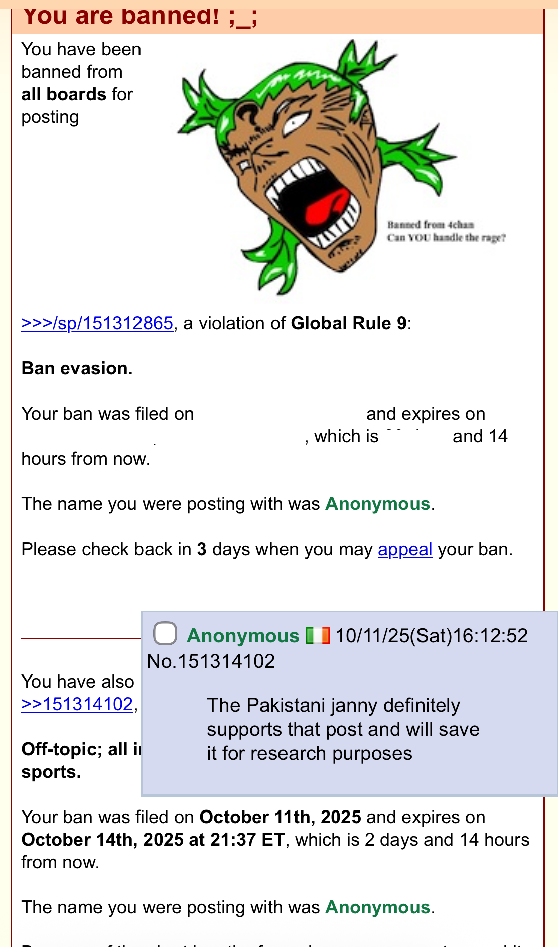 >>151446437>>151446464I got banned because I was angry towards Jews and said something like "6 million my ass". Boy oh boy.