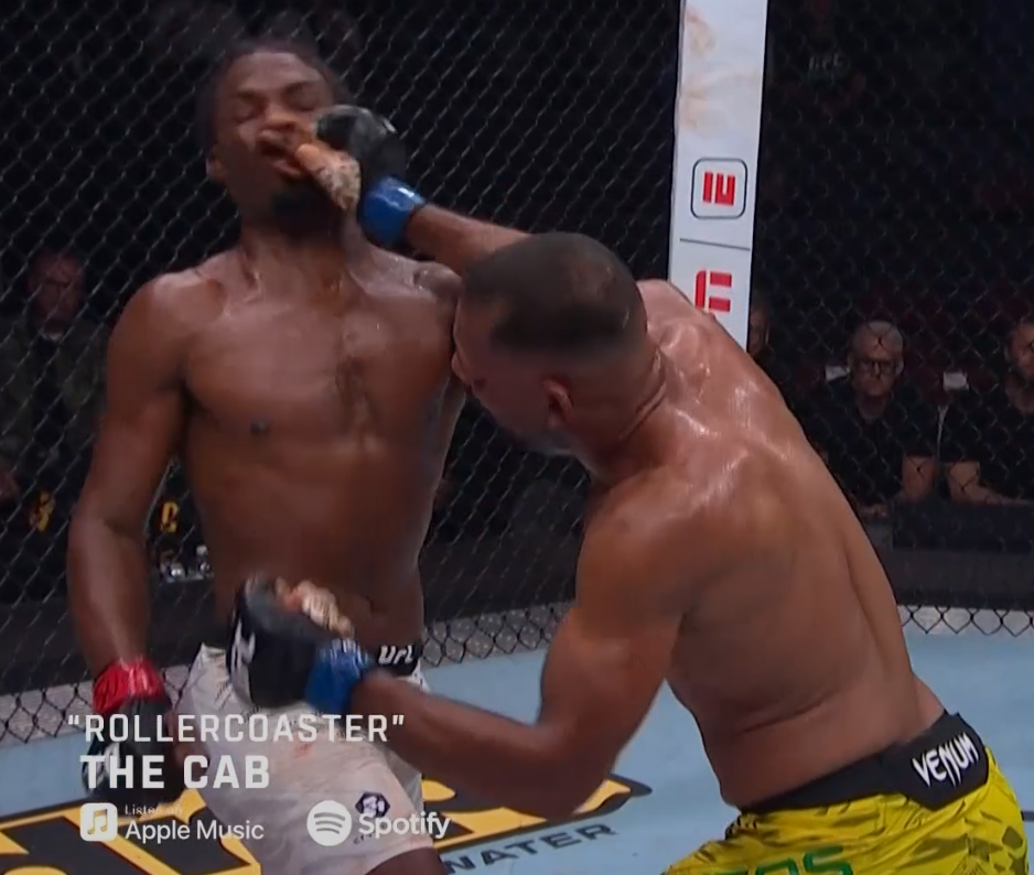 Cormier has his hand firm on the neck of the blonde. Damn, Cormier living his wild fantasy right infront of us.