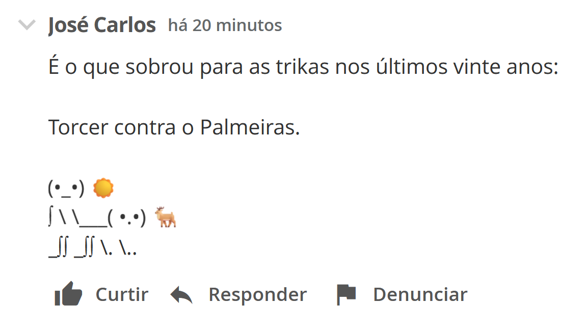 >5 minutes in>ref didn't gave a penal for palmeiras>red didn't redcarded a flamerda playertime chorão do caralhotoda desgraça é pouca pra essa merda