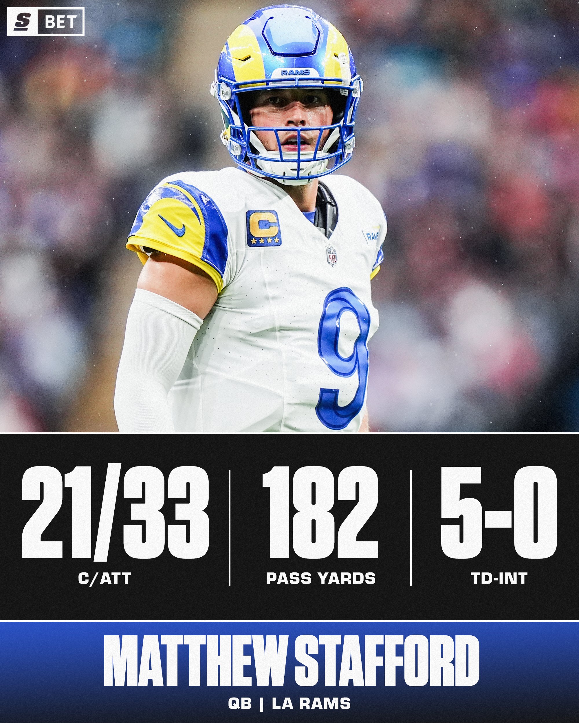 Matthew Stafford faced a season-high 55.9% blitz rate against the Jaguars and threw all five of his touchdowns against the blitz.Stafford tied Patrick Mahomes and Baker Mayfield for the most TD passes against the blitz in any game since 2016.Previous >>151468337