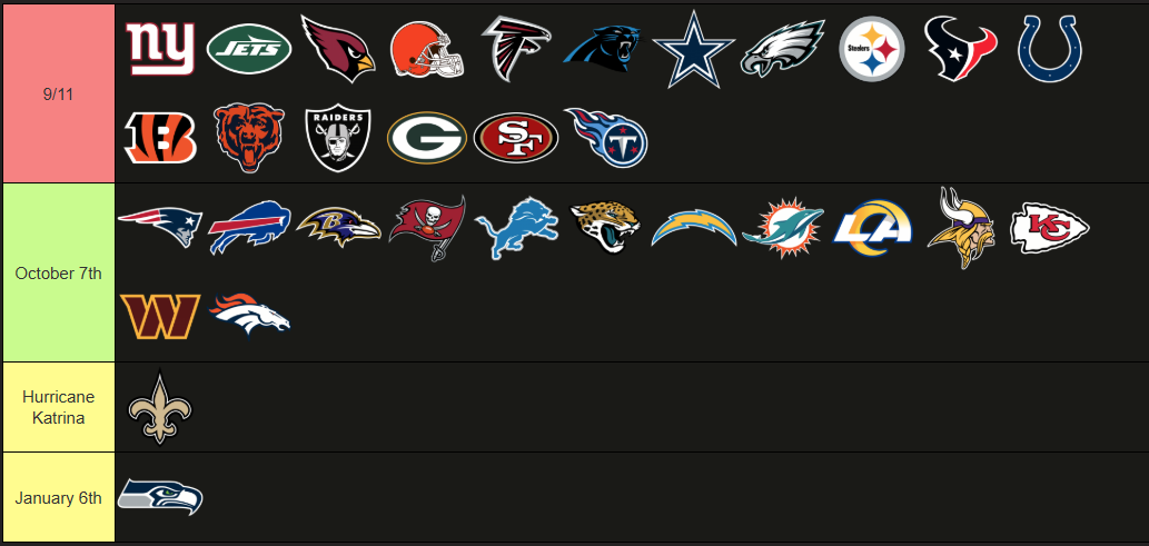 >>151482042Oh I didn't mean to be rude thenThe highest seed of the week automatically gets to play the lowest seed no matter what. Then the next highest gets to play the next lowest, and so onSo in that scenario 1 seed Colts get to play 6 seed Chiefs (The lowest remaining) and 2 seed Patriots get to play 5 seed BillsTeams try to get the highest seed they can for a January advantage