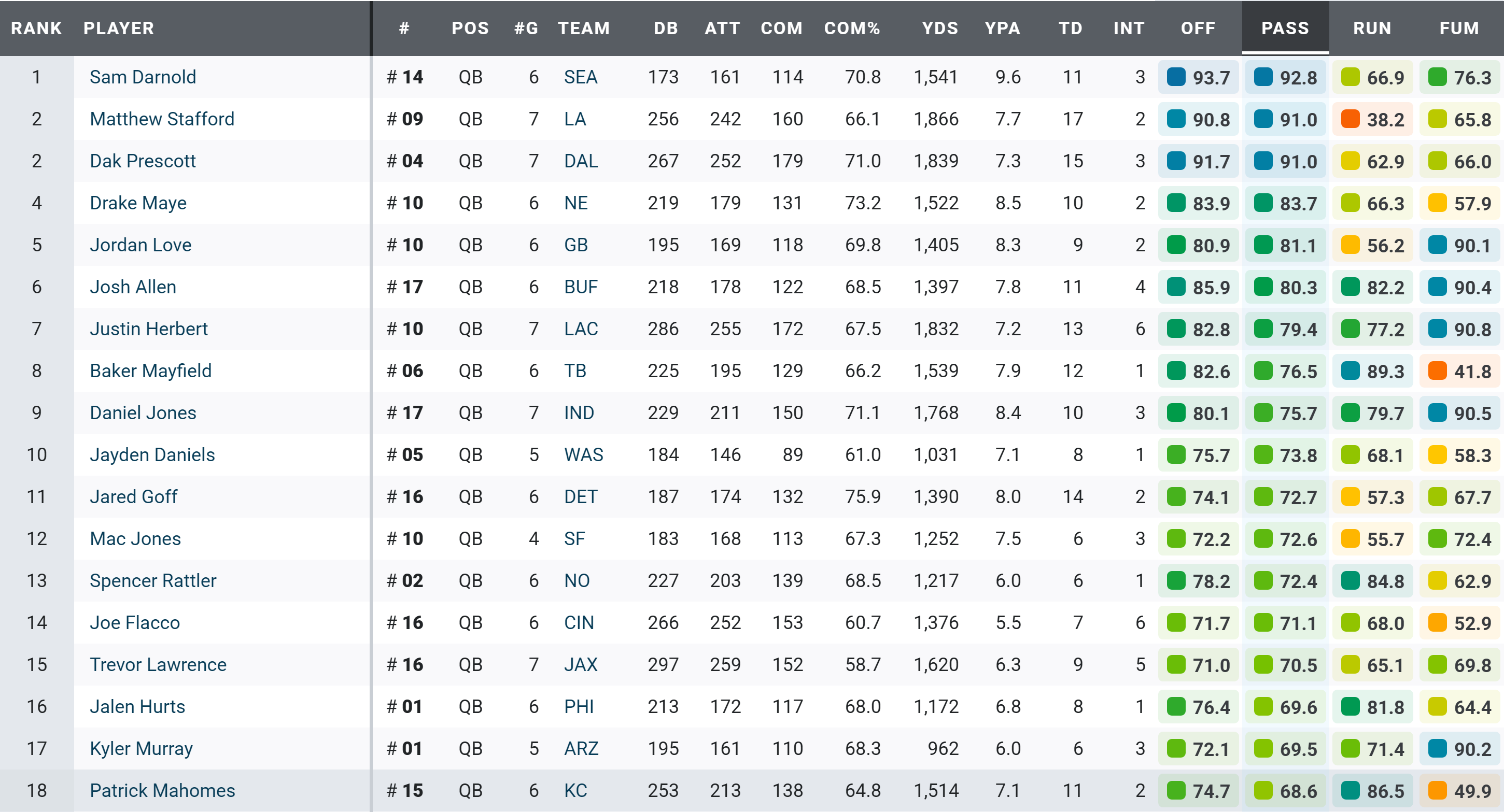 MVP rank1. Stafford2. Mahomes3. Baker4. Maye5. Dak