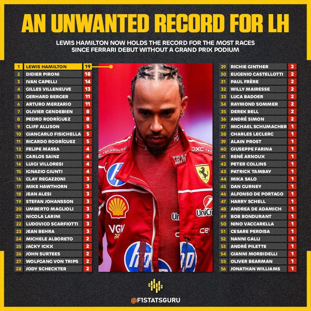 Reminder that Lewis Hamilton is now, from a statistical viewpoint, the worst driver Ferrari have ever had. And the most expensive.