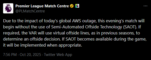 >VAR offsides are fucked because of a tech issue affecting many around the world what?