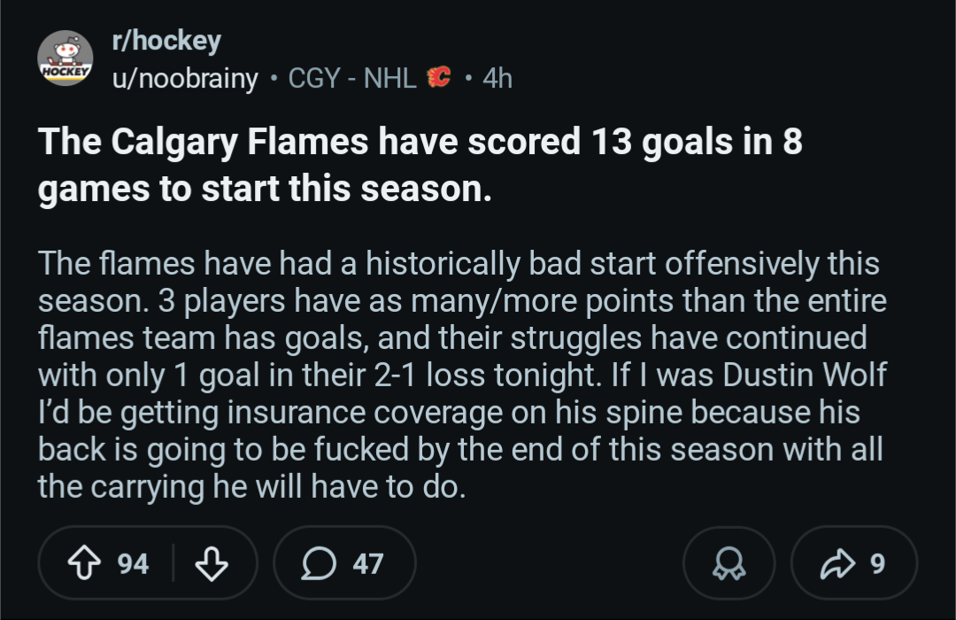 Honestly I’m starting to think this league is rigged against the flames. These powerplays were bullshit.