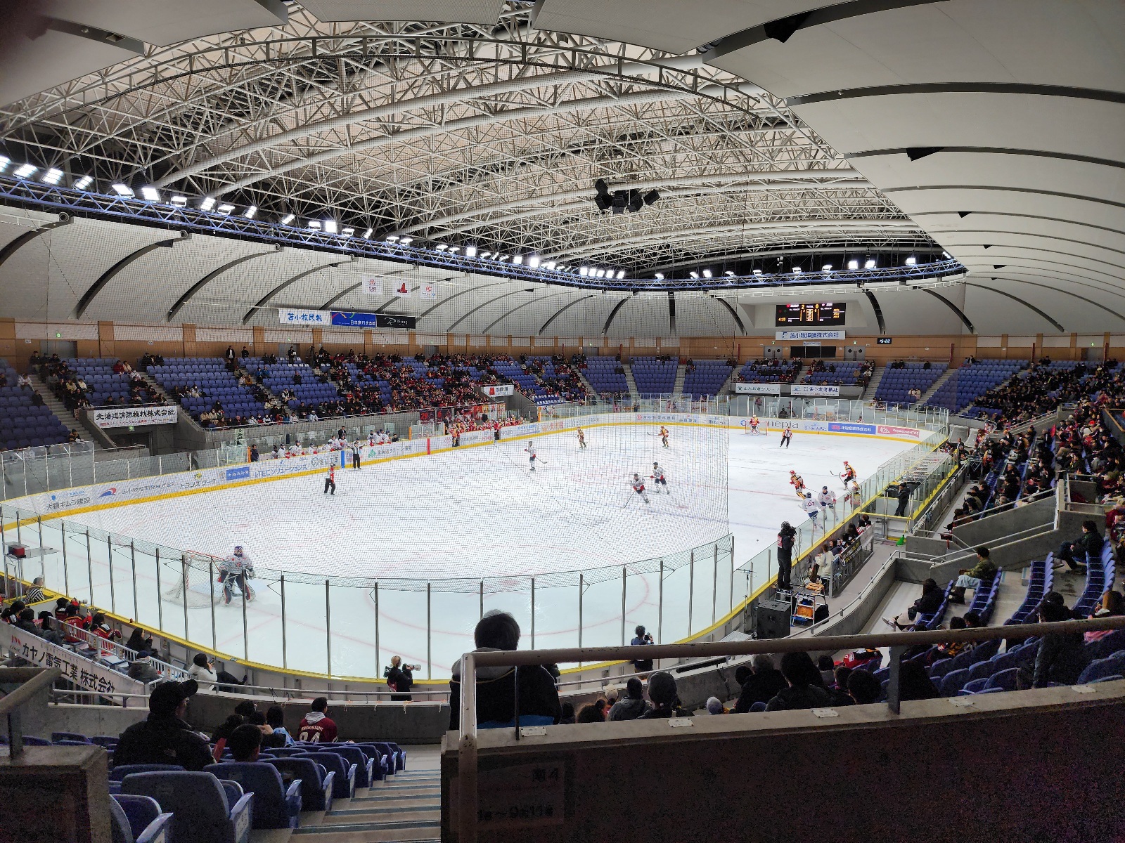 I mentioned going to see the Hokkaido Red Eagles Japan's best Hockey Team.Said I'd post the Arena. Take in the joy of a sport that is not popular in Japan. My boys. DOMINATING7-1 going into the third. Hokkaido will never lose again.